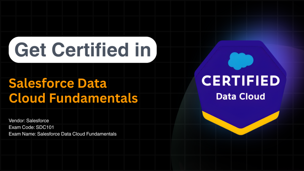 The Salesforce Data Cloud Fundamentals certification validates your ability to understand, configure, and utilize Salesforce Data Cloud to unify customer data, enable personalization at scale, and deliver intelligent insights. This certification helps professionals master real-time data ingestion, identity resolution, segment creation, and activation of data across Salesforce applications. Whether you work in CRM, marketing, analytics, or customer experience, this credential demonstrates proficiency in modern customer data platform (CDP) capabilities—making you an invaluable asset for data-driven organizations.